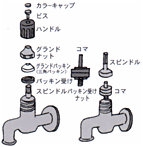 2)カラーキャップ、ビス、ハンドル、グランドナットの順で外します。
