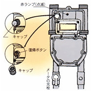 3)復帰ボタンを奥までしっかり押さえて、手を離す。(ボタンはもとに戻り、赤ランプは再び点滅します。)